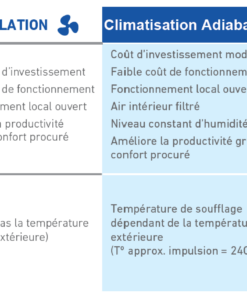 Ces systèmes d’évaporation sont adaptés au climat contiental (froid en hiver, très chaud en été) et constituent une excellente alternative à la climatisation avec système thermodynamique pour réguler la température de grands espaces, et ceci avec un faible coût énergétique.