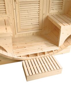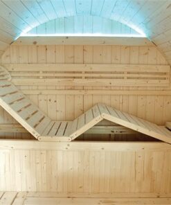 Conçu en bois massif d’épicéa, ce sauna d’extérieur comprend une banquette escamotable tout confort pour profiter de votre moment de détente allongé, tête reposée. Confortablement installé, faites jouer les lumières à l’aide de la télécommande pour profiter pleinement des bienfaits de la chromothérapie.