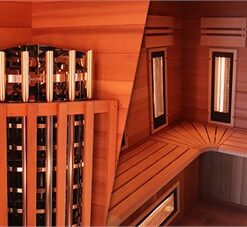Le Combi Access est doté à la fois de la double technologie infrarouge Full Spectrum & Magnésium et d’un poêle vapeur pour une séance bien-être traditionnelle. Ces trois technologies couvrent l’ensemble des besoins de tout utilisateur du sauna. Les rayons infrarouges du sauna qui agissent en profondeur peuvent apporter plusieurs bénéfices aux personnes à mobilité réduite en agissant sur différents aspects : les rayons quartz apaisent les lésions cutanées et soulagent les muscles et articulations ; les rayons magnésium stimulent la circulation sanguine.