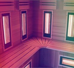 Avec cette disposition, même le sauna que vous installez dans votre centre accueillant du public répond aux normes relatives à l’accessibilité aux personnes à mobilité réduite. Les finitions de haute qualité se traduisent en un confort exceptionnel que l’on veut retrouver le plus souvent possible : la banquette généreuse en bois d’abachi au toucher doux, le jeu de lumières LED propice à la chromothérapie, l’audio complet et le kit sauna.