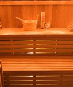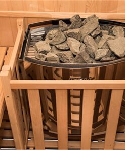 Son kit d’accessoires inclus le seau, la louche, le thermomètre et l’hygromètre. Pour assurer une température idéale, le poêle Harvia est inclus ainsi que 20kg de pierres de lave.
