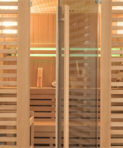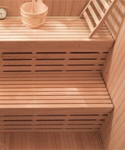 Un sauna traditionnel vapeur au design soigné et élégant. Derrière ses larges surfaces vitrées, agrémentées d’élégantes persiennes, appréciez tous les bienfaits d’un sauna vapeur de grand standing dans une ambiance cosy. L’essence d’épicéa du Canada qui le compose, suggère à elle-seule la détente et le bien-être. À l’intérieur, les bancs à 2 hauteurs semblables aux saunas traditionnels finlandais, vous offrent la possibilité d’apprécier différents niveaux de température (pour les modèles 3/4 et 4/5 places).